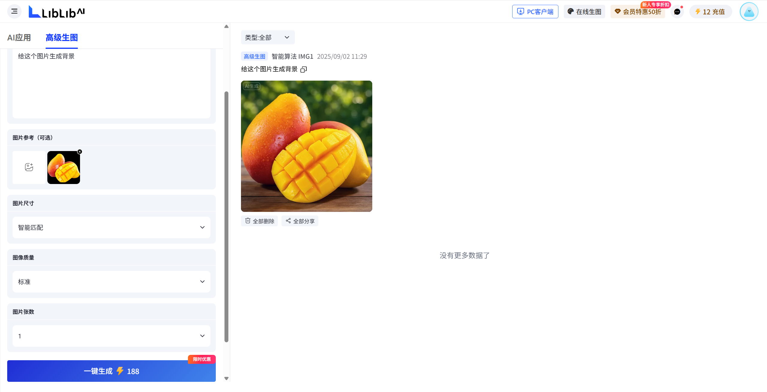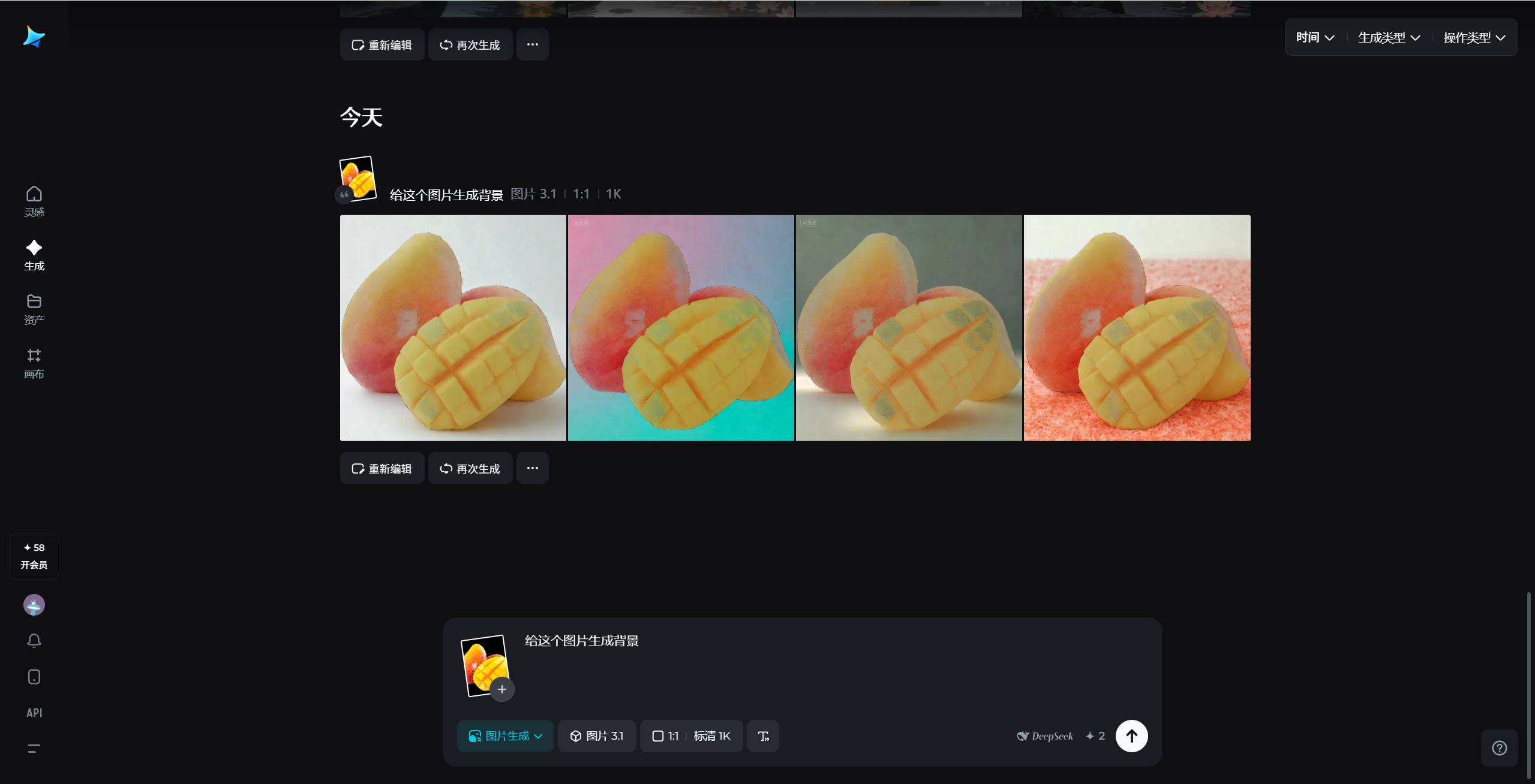 这个是国内版的loveart,我们可以直接上传参考图(也就是商品图),然后告诉AI给这个商品图生成背景,ai就会获取指令。