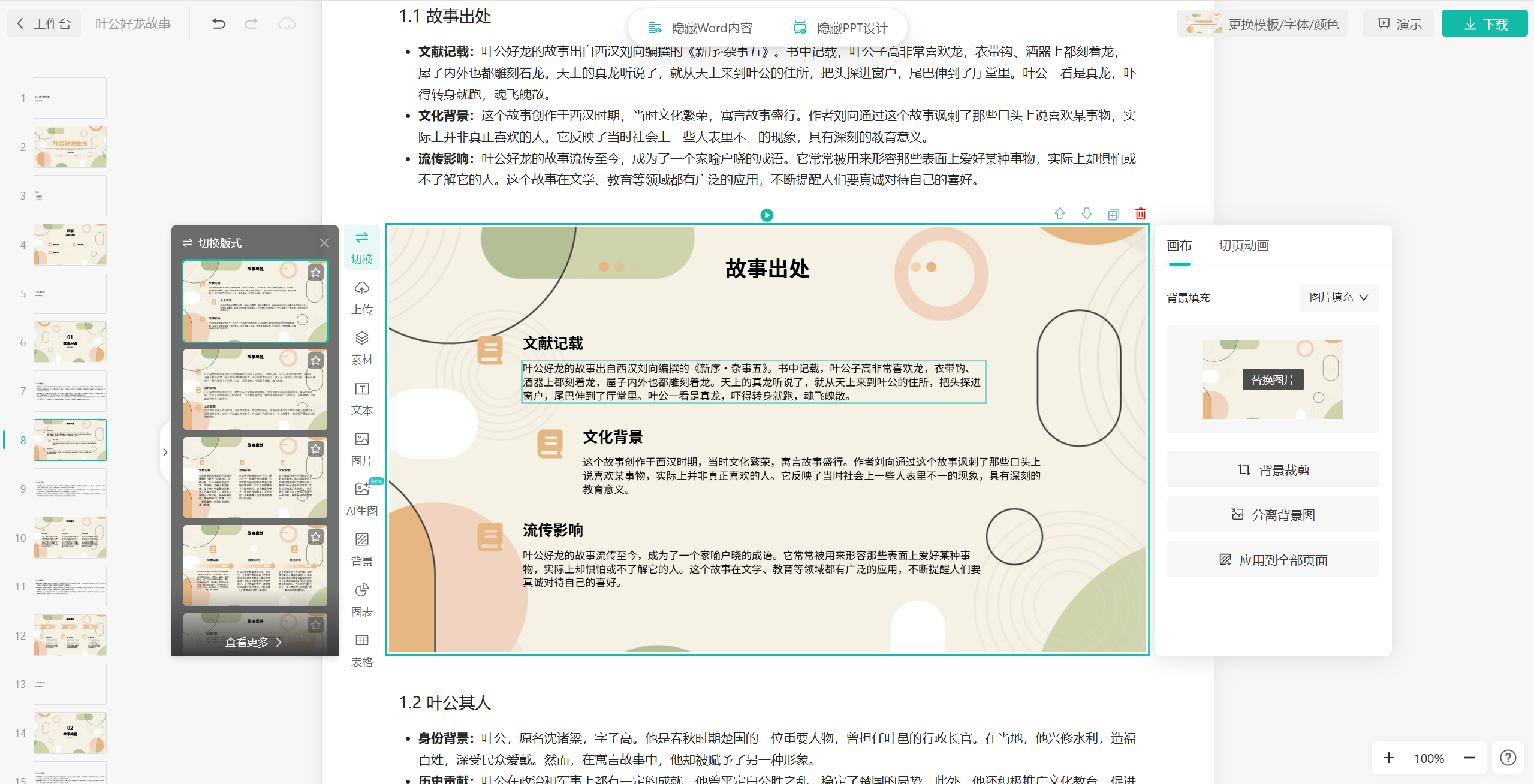 最后就是下载使用了,这样我们的word赚ppt就算是完成了,是不是很方便很快捷?几乎不需要我们自己动手就能够完成!