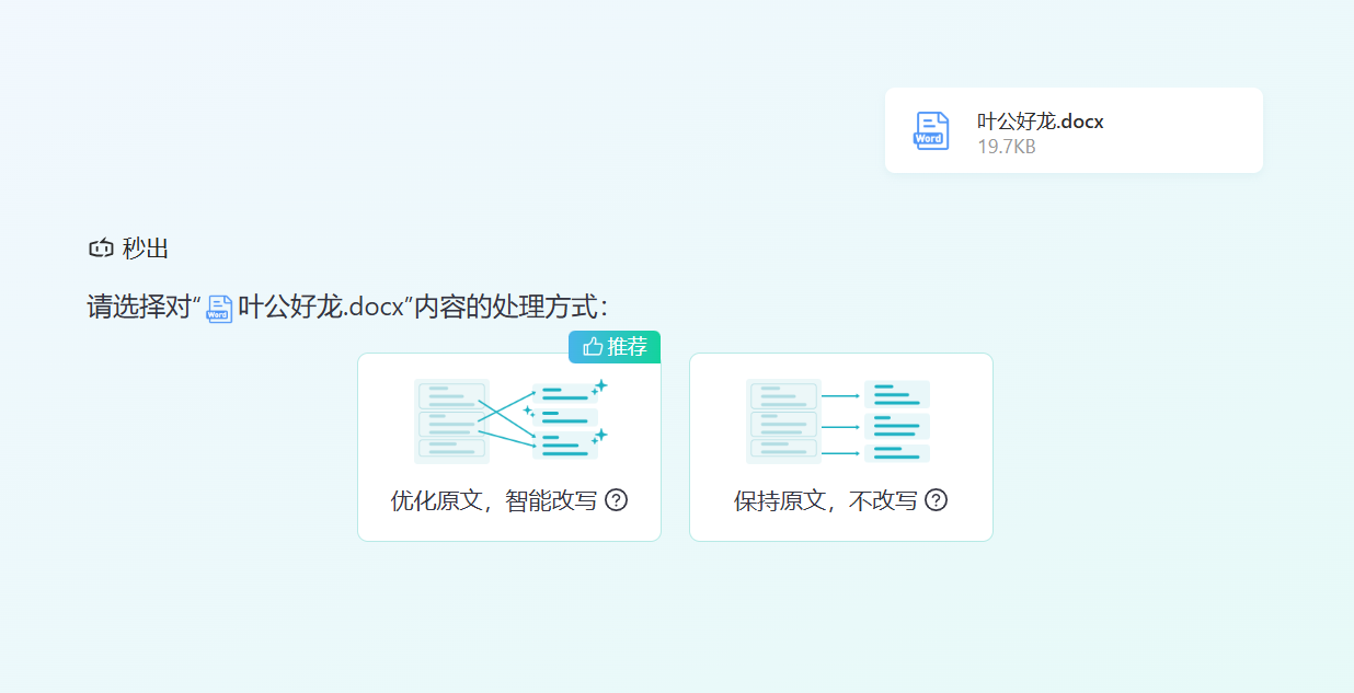 之后会出现两种可选的选项,第一种是保持原文,第二种是ai智能优化。如果你的文档是完整的,不需要修改,只需要排版的那就选择保持原文,ai只会对原文内容进行排版设计,搭配合适的图片;如果你的文档是需要修改优化的,那么可以选择智能优化,让ai对内容进行优化调整,然后生成ppt。