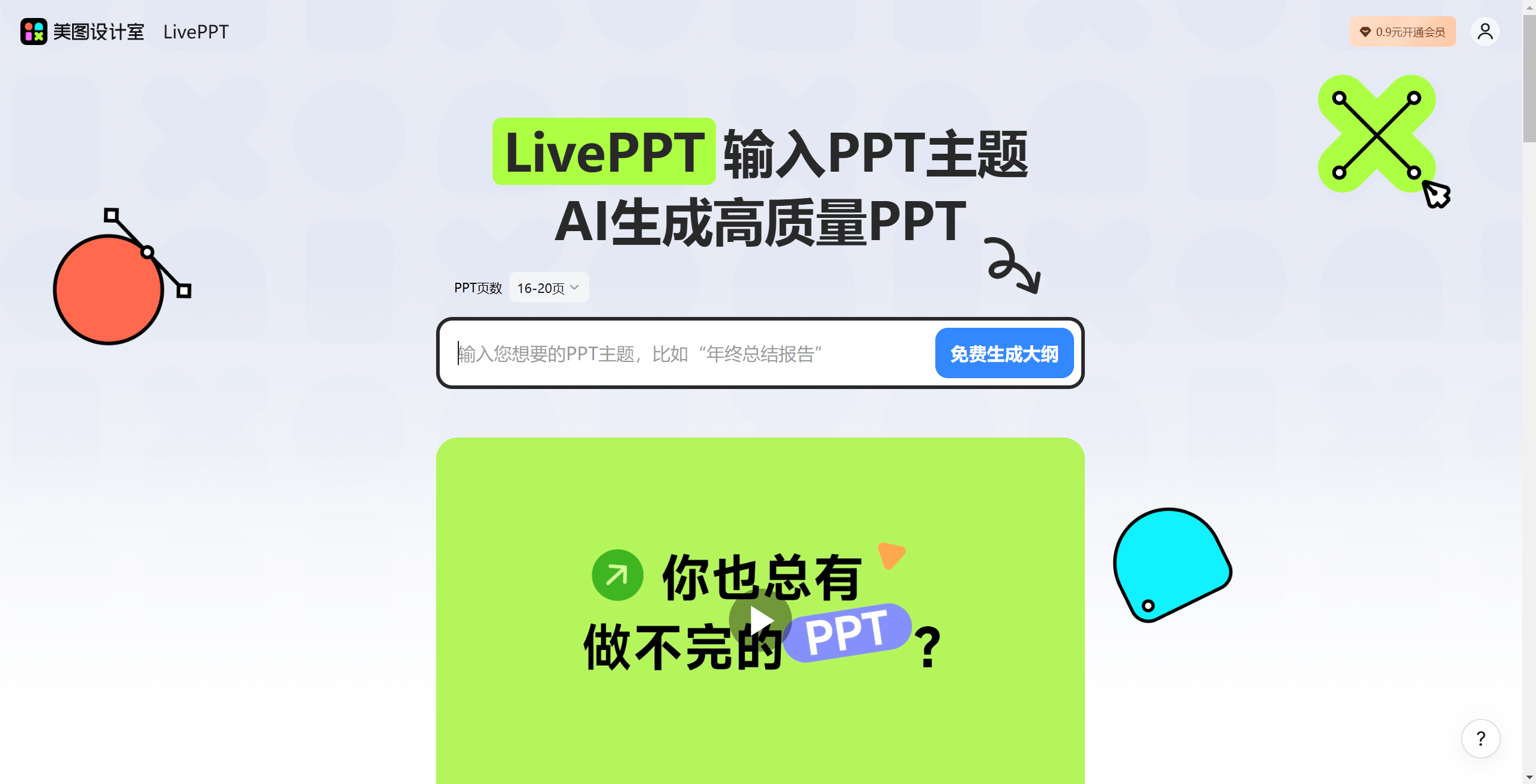 - 免费大纲:支持免费生成PPT大纲,方便学术用户。