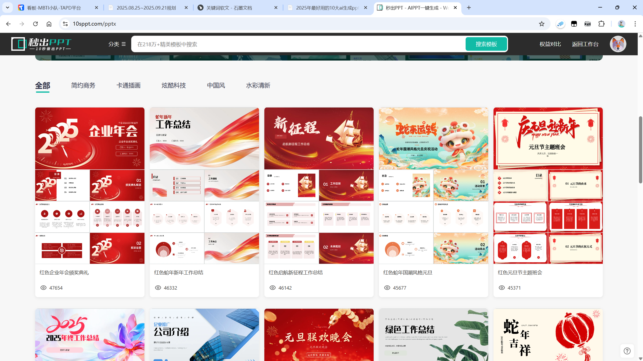 秒出PPT还自带一个模板站,数量丰富并且风格很多,你可以找到你想要的任意模板,满足不同的场景需求。