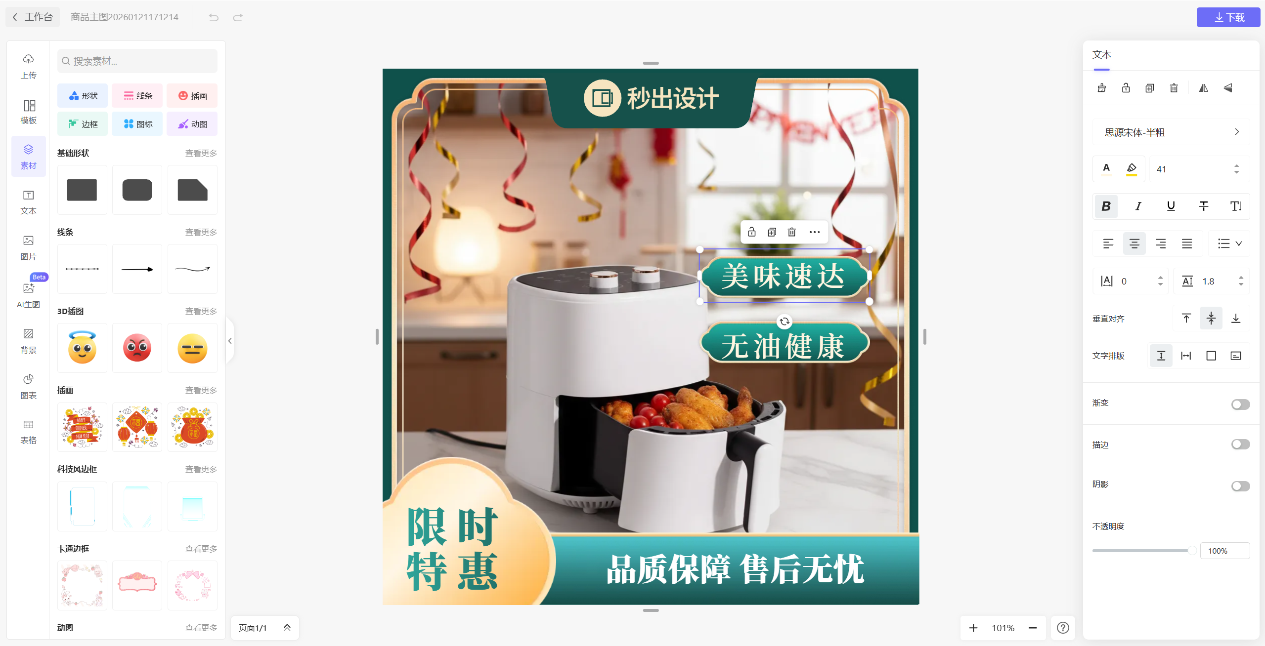 别再为电商海报苦恼啦,秒出设计既可以生成好看的图片,又可以在线编辑,还不快来使用!