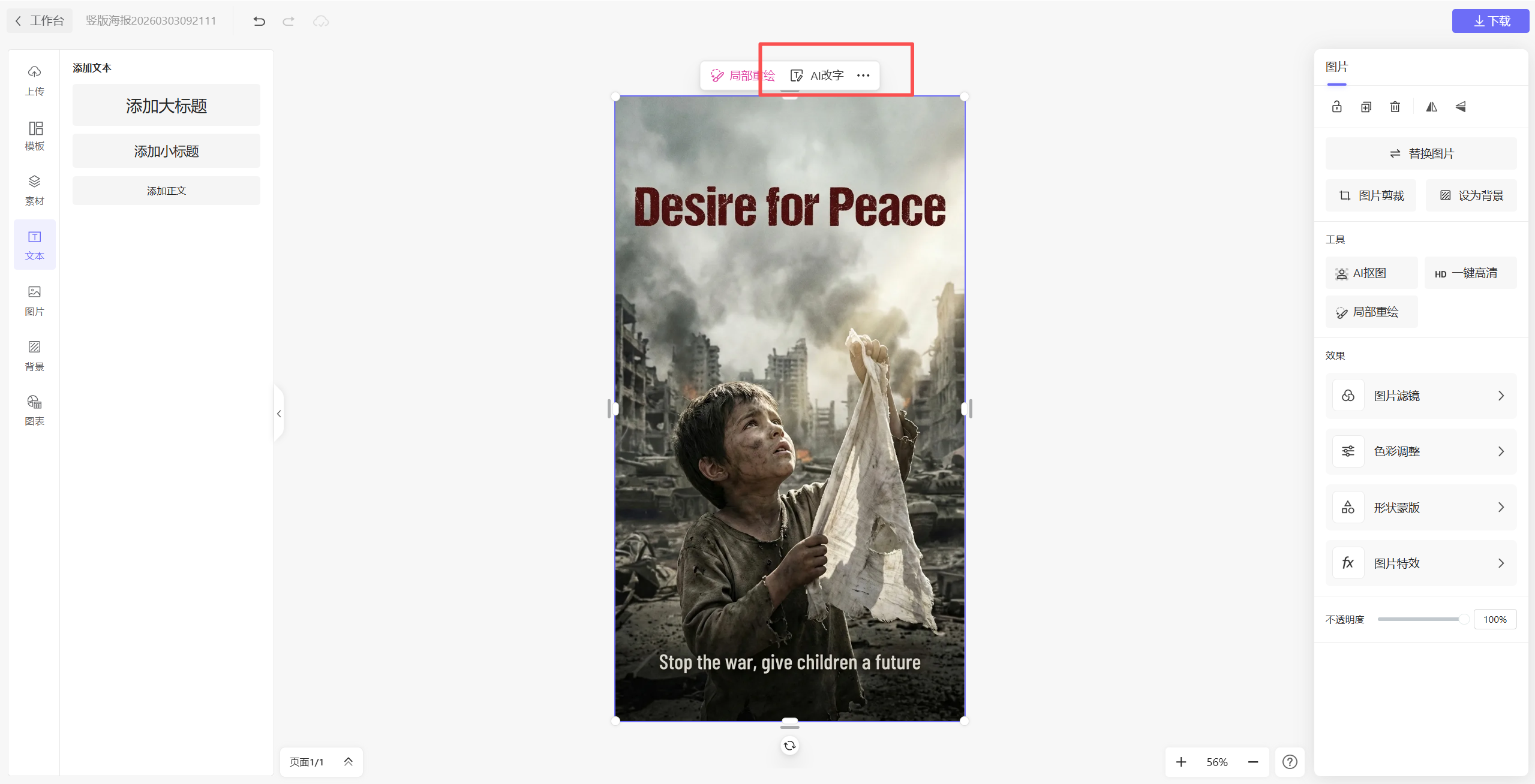 这样我们可以快速做出一张深入人心的反战海报,快去试试吧~