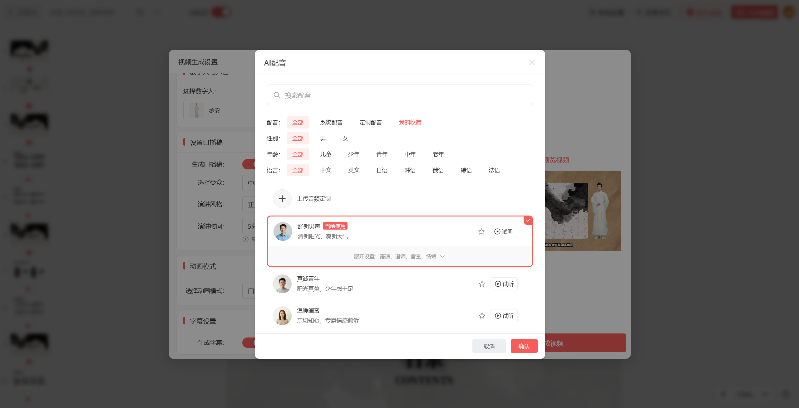 另外,工具还支持数字人和声音定制功能——可以上传自己的照片生成专属数字人,上传自己的录音定制专属讲解声音,让微课更有个人特色。不过需要提醒大家,定制功能的费用相对较高,如果不是有特殊需求,使用工具内置的数字人和声音就足够满足日常微课制作;若确实需要定制,建议上传清晰的正面照片和无杂音的音频,确保定制效果更佳。